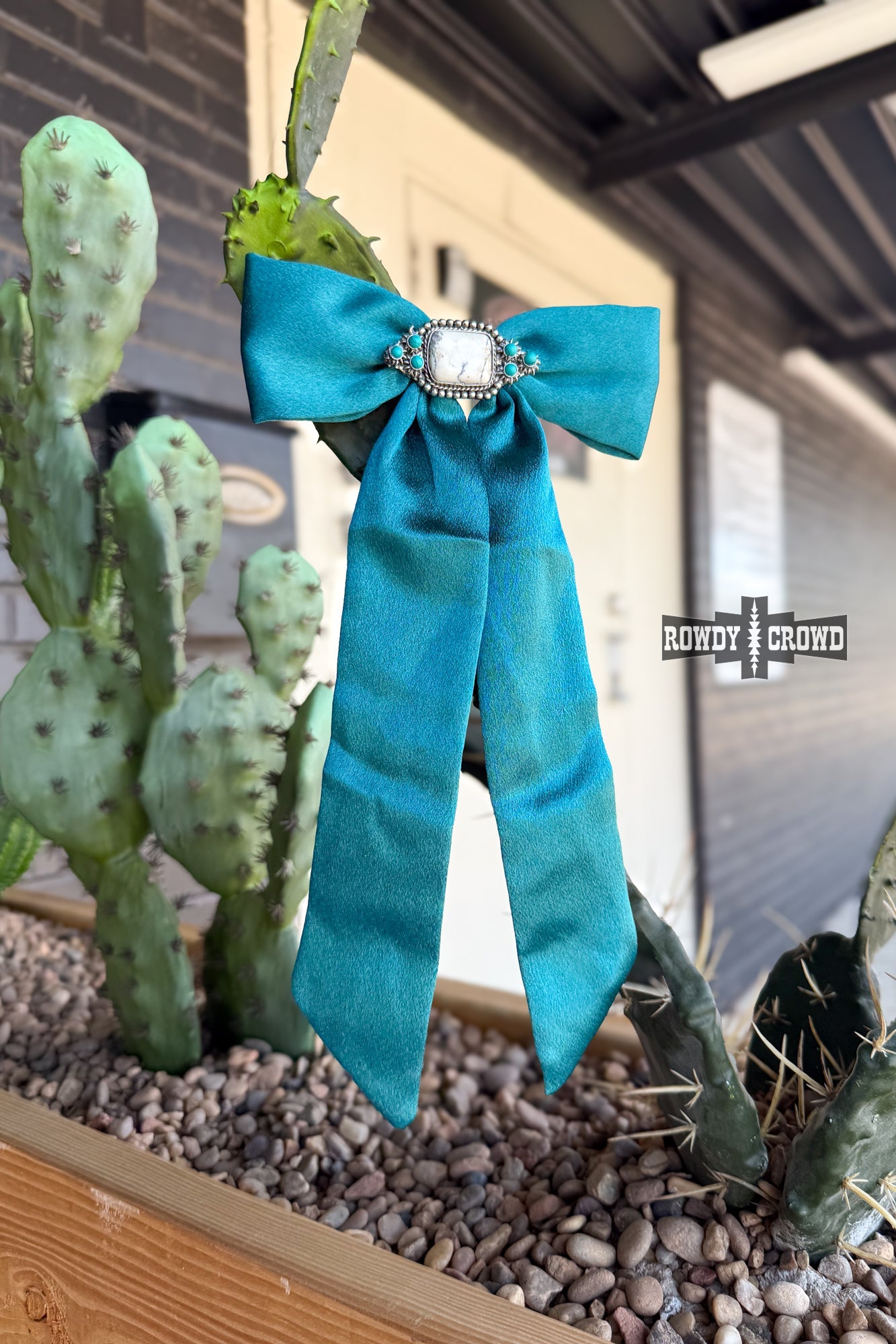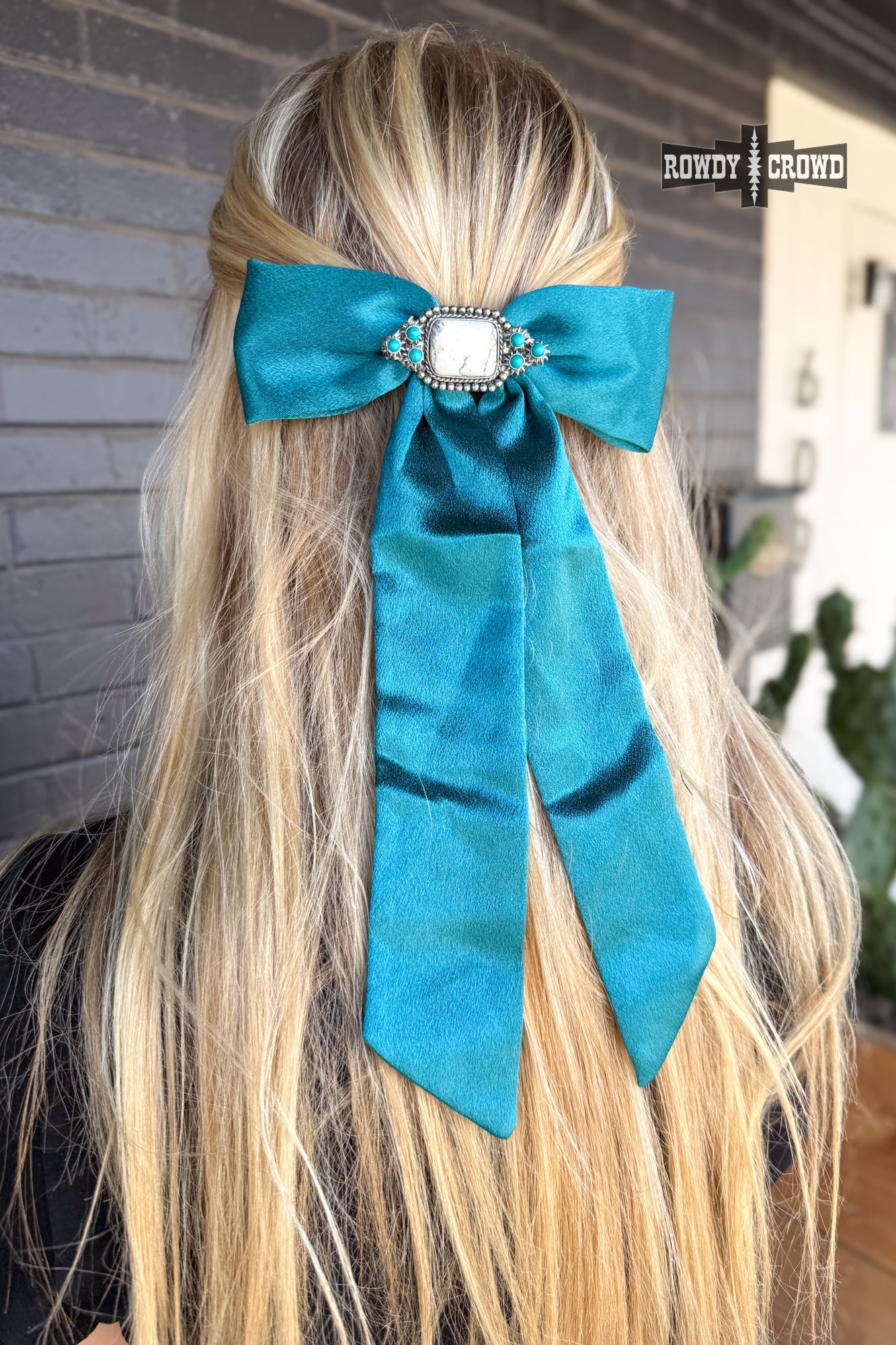 Turn heads and tie it up western with the Bonita Bow! Featuring a bold white stone concho with turquoise details makes it the perfect mix of cowgirl glam and rodeo sass. You'll definitely feel bonita with this bow!