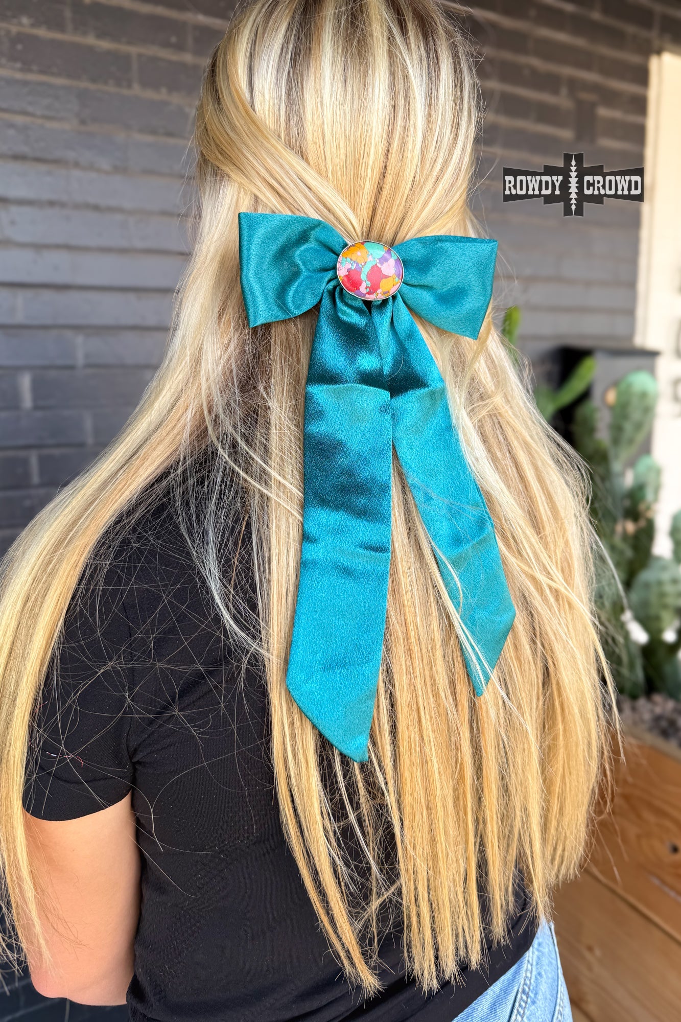 Bright, bold, and a little rowdy—the Rainbow Bright Bow with a colorful stone concho brings the perfect pop of cowgirl flair to any outfit